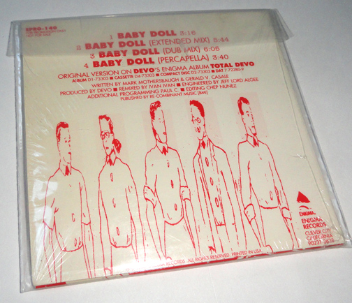 Baby Doll CD Single (Cardboard Sleeve PROMO) Catalog #: EPRO-140 Label: Enigma Release Date: 1988 Country: USA . 1. Baby Doll (Single Mix) 2. Baby Doll (Extended Mix) 3. Baby Doll (Dub Mix) 4. Baby Doll (Percappella)