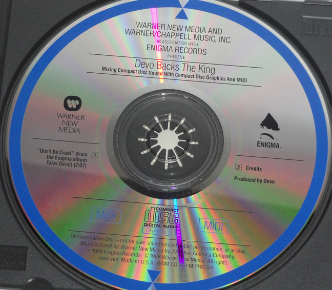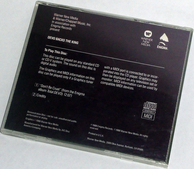 Extremely rare promo-only CD with Midi & Graphics (The world's first...?). Features DEVO covering Elvis' "Don't Be Cruel". Promo for their "Total DEVO" album.