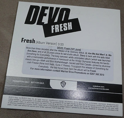 UK Promo copy of DEVO's Fresh single. This version is packaged