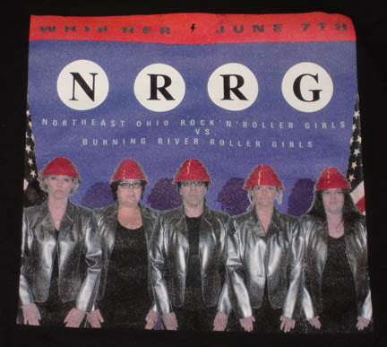 NE Ohio Roller Girls Tee DEVO Tribute T-shirt made by The Northeast Ohio Rock 'n Roller Girls for a 2008 game. Thank you very much to the NRRG for donating this shirt to the Devo-Obsesso archives! See Close Up of Tee See Back of Tee