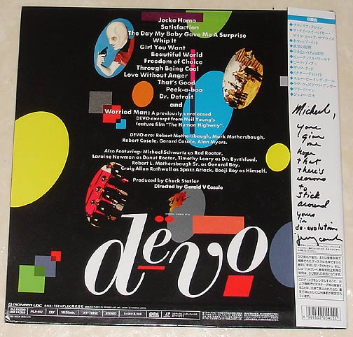 We're All DEVO Japan Import Laser Disc Catalog #: (Pilp1117) Label: Pioneer Release Date: 1983? Country: Japan Japan import pressing - alternate cover graphics w/ geometric shapes & black background..